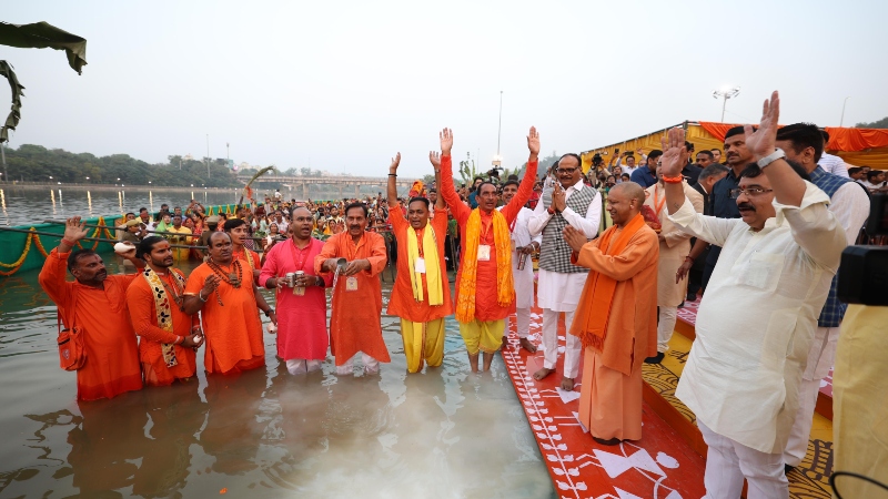 सीएम योगी ने भोजपुरी में श्रद्धालुओं कहा कि हमरा बड़ा आनंद महसूस हो रहल बा, माता और बहन लोगन के विशेष मंगलकामना। सीएम योगी ने कहा भारत की संस्कृति का अलग स्थान बा, भोजपुरी भाषा की अपनी पहचान बा। सीएम ने कहा कि भोजपुरी समाज आज संपूर्ण विश्व में छठ की सुगंध को अपने साथ ले जाकर ‘एक भारत-श्रेष्ठ भारत’ की परिकल्पना को साकार कर रहा है।