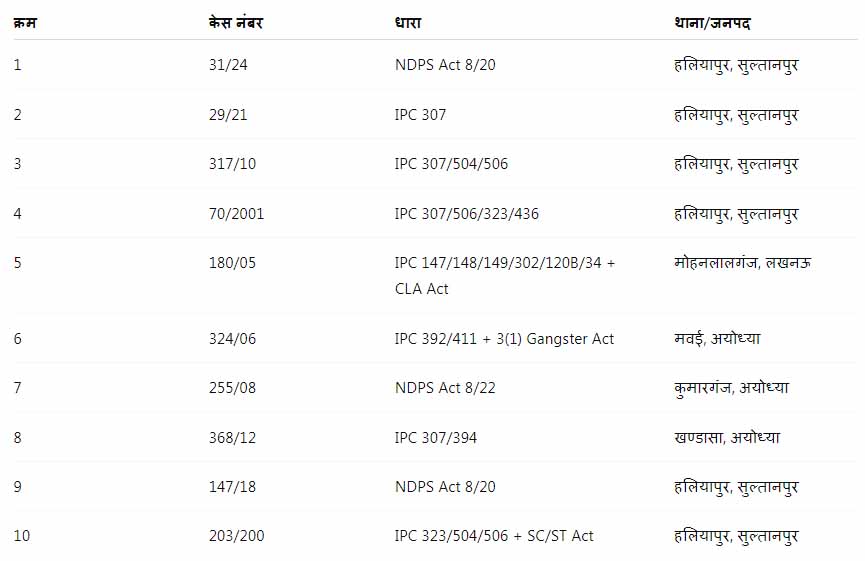 शक्ति सिंह पर लखनऊ, सुल्तानपुर, अयोध्या और अमेठी समेत कई जिलों में संगीन धाराओं के तहत 35 से अधिक आपराधिक मुकदमे दर्ज हैं। इनमें हत्या, हत्या की कोशिश, लूट, गैंगस्टर एक्ट, आर्म्स एक्ट, SC/ST एक्ट और एनडीपीएस एक्ट जैसे गंभीर मामले शामिल हैं।