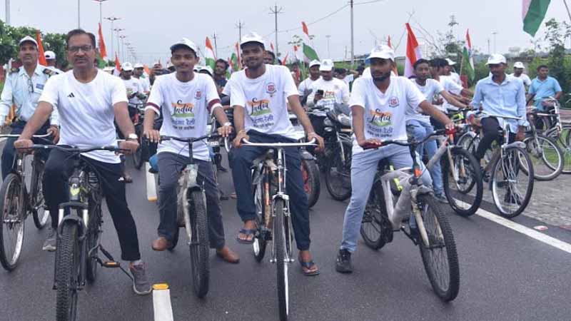 Sandesh Wahak Digital Desk: लखनऊ हर घर तिरंगा अभियान के तहत स्वतंत्रता दिवस की पूर्व संध्या पर गुरुवार को सुबह छह बजे केजीएमयू से तिरंगा बाइक और तिरंगा साइकिल रैली आयोजित की गयी। उक्त आयोजन राज्यपाल/कुलाधिपति आनंदी बेन पटेल के निर्देशों पर हुआ था।
