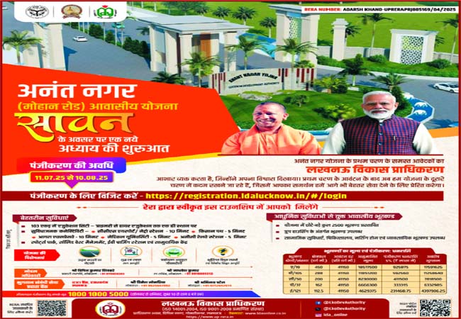 एलडीए की ओर से अनंत नगर योजना के संबंध में जारी किए गए विज्ञापन को देखकर यही लगता है मानों अनंत नगर योजना बड़े उद्योगपति, व्यापारियों, नेता व अफसरों के लिए लॉन्च की गई है वो भी विज्ञापन में प्रधानमंत्री नरेन्द्र मोदी व प्रदेश के मुख्यमंत्री योगी आदित्यनाथ का फोटो लगाकर।