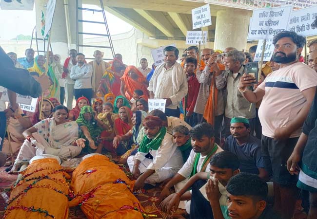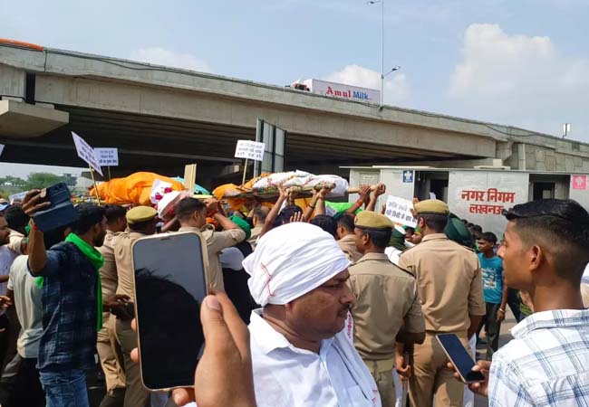 Lucknow: नेशनल हाईवे पर किसानों का अनोखा प्रदर्शन, सजाई LDA और आवास विकास की ‘अर्थी’