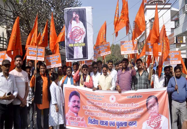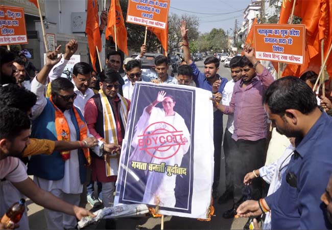 Lucknow: ममता के ‘मृत्युकुंभ’ बयान पर विश्व हिंदू रक्षा परिषद ने फूंका पुतला, इस्तीफे की मांग