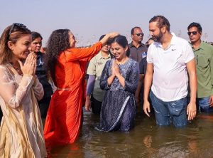 ईशा अंबानी अपने सादगी भरे लेकिन स्टाइलिश लुक्स के लिए जानी जाती हैं। महाकुंभ में भी उनके दो अलग-अलग लुक्स ने सबका ध्यान खींचा। स्नान और पूजा के लिए ईशा ने नेवी ब्लू बांधनी कुर्ता पहना, जिस पर सिल्वर गोटा पट्टी और हल्का मिरर वर्क किया गया था। उन्होंने इसे स्लीक पोनीटेल और ब्लैक गॉगल्स के साथ स्टाइल किया। नो-मेकअप लुक में भी उनका अंदाज बेहद आकर्षक लगा।