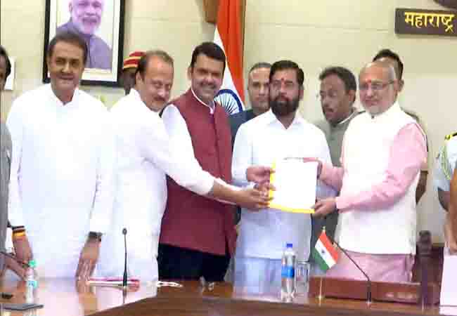 Maharashtra: देवेंद्र फडणवीस, एकनाथ शिंदे और पवार ने की राज्यपाल से मुलाकात, सरकार बनाने का दावा किया पेश