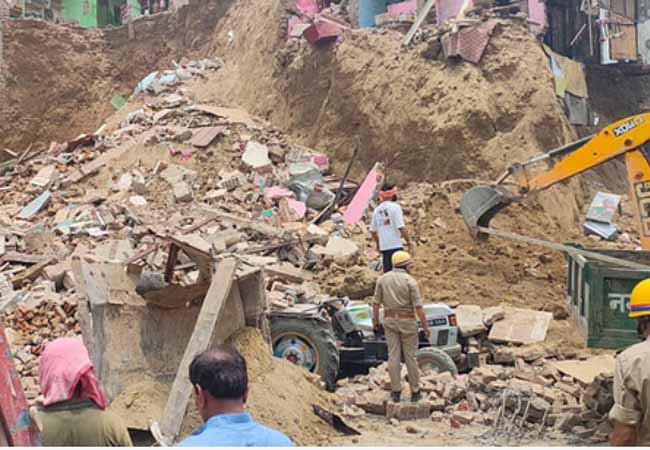 तीन मकान जमींदोज, मलबे में दबे मजदूर और बच्चे