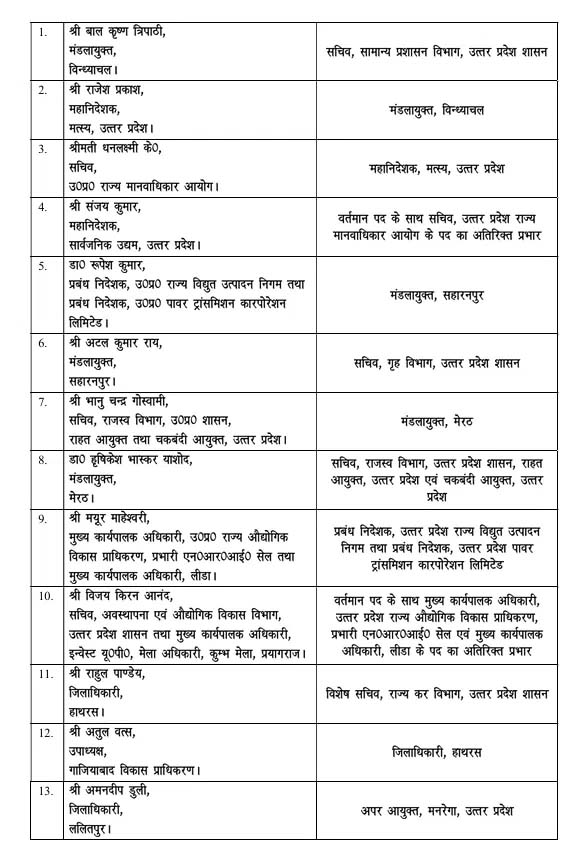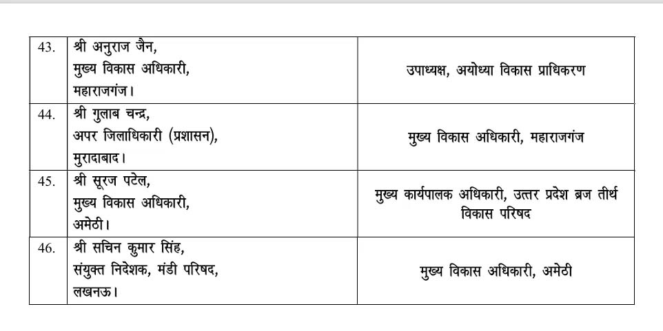 Sandesh Wahak Digital Desk: उत्तर प्रदेश में मुख्यमंत्री योगी आदित्यनाथ की सरकार ने ब्यूरोक्रेसी में बड़ा बदलाव करते हुए एक साथ 46 भारतीय प्रशासनिक सेवा (IAS) अधिकारियों का तबादला कर दिया है। इस फेरबदल में कई जिलों के जिलाधिकारी (DM), मुख्य विकास अधिकारी (CDO) और नगर आयुक्त बदल दिए गए हैं।