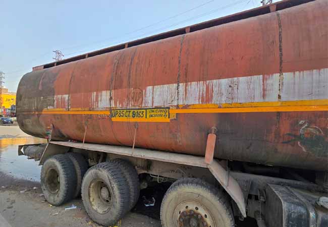 मिलावटी पेट्रोलियम पदार्थ (बिटुमिन) से भरा टैंकर नंबर यूपी – 85 – सीटी-9163, वजन करीब 21.50 टन।