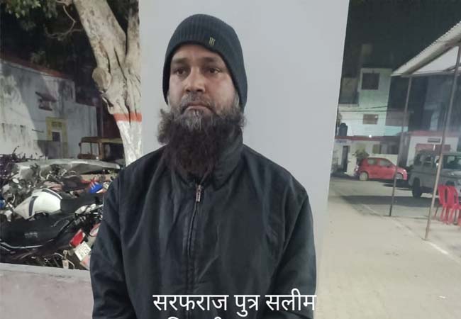 गिरफ्तार अभियुक्त का नाम सरफराज पुत्र सलीम उर्फ शहाबुद्दीन है। जो मौलाना पहलवान कॉलोनी, मस्जिद के पास, हुमायूं नगर, थाना लिसाड़ी गेट, मेरठ का रहने वाला है। अभियुक्त को 18 जनवरी रात करीब 9.05 बजे सम्भल रोड रेलवे क्रॉसिंग के पास से गिरफ्तार किया गया है।