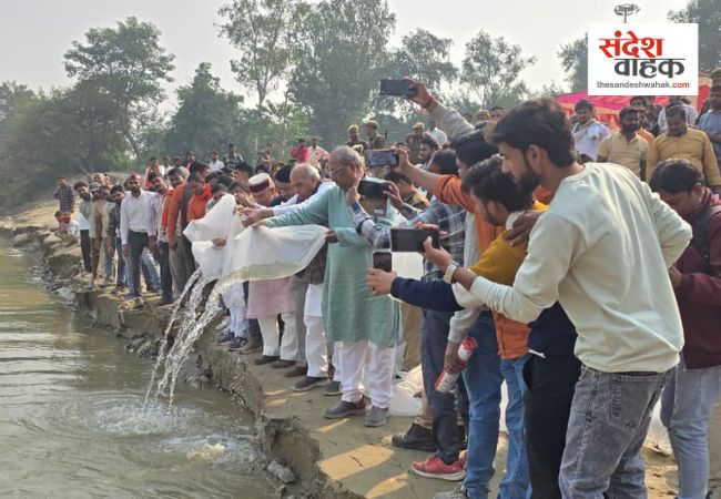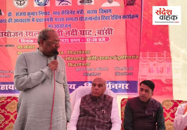 Sandesh Wahak Digital Desk: मंगलवार को जनपद सिद्धार्थनगर में मत्स्य विभाग, उत्तर प्रदेश सरकार के मंत्री डॉ. संजय कुमार निषाद की अध्यक्षता में मत्स्य सम्पदा योजना के तहत एक महत्वपूर्ण रिवर रैचिंग कार्यक्रम आयोजित किया गया। बांसी स्थित राप्ती नदी घाट पर संपन्न हुए इस कार्यक्रम में डुमरियागंज के सांसद जगदंबिका पाल और मुख्य विकास अधिकारी बलराम सिंह भी उपस्थित रहे। कार्यक्रम में, मंत्री डॉ. संजय निषाद, सांसद जगदंबिका पाल और अन्य गणमान्य व्यक्तियों ने मिलकर 1 लाख मछली के बच्चों को राप्ती नदी में प्रवाहित किया।