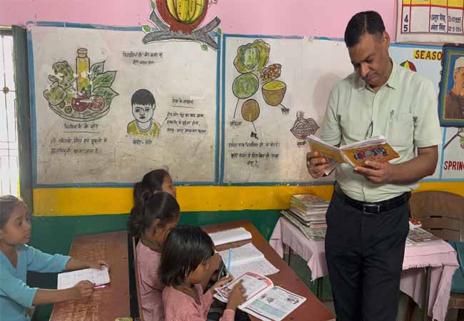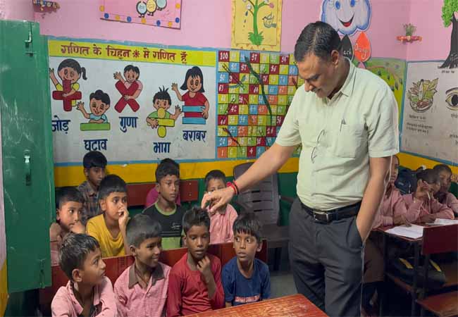 Sandesh Wahak Digital Desk: मिर्जापुर जिलाधिकारी पवन कुमार गंगवार ने आज सीखड़ ब्लॉक के प्राथमिक विद्यालय, डोमनपुर का अचानक निरीक्षण किया। इस दौरान उन्होंने बच्चों से कविता और पहाड़े सुने, साथ ही शिक्षकों को पढ़ाई का स्तर सुधारने के निर्देश दिए।