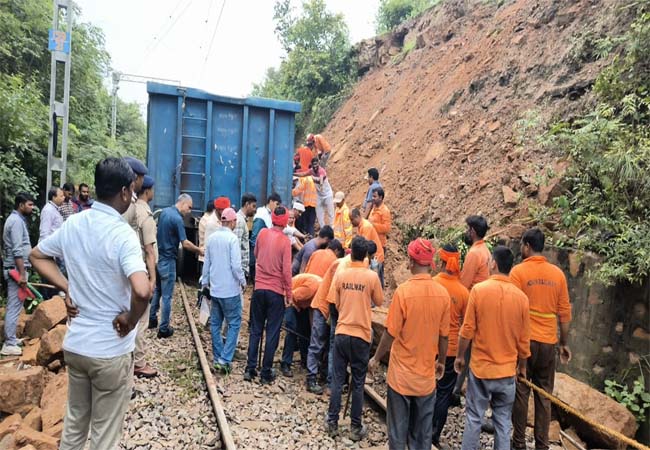 Sandesh Wahak Digital Desk: सोनभद्र जिले के चुर्क और चोपन रेलवे स्टेशनों के बीच भारी बारिश के कारण सोमवार तड़के पटरियों पर पहाड़ का मलबा गिरने के कारण एक मालगाड़ी पटरी से उतर गयी। रेलवे के एक अधिकारी ने बताया कि हादसे की वजह से कई घंटे तक रेलगाड़ियों का आवागमन बाधित रहा, लेकिन किसी के हताहत होने की खबर नहीं है।