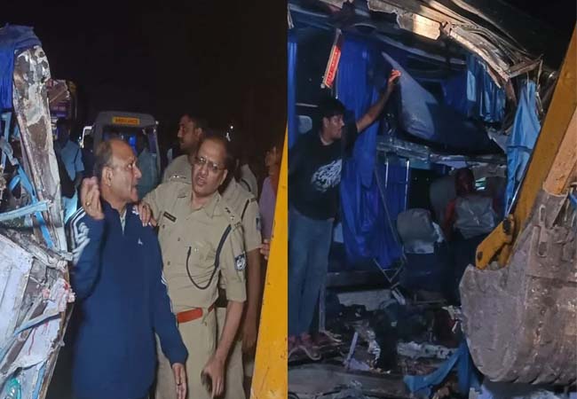 पुलिस ने बताया कि बस उत्तर प्रदेश के प्रयागराज से नागपुर की ओर जा रही थी तभी जिला मुख्यालय से करीब 25 किलोमीटर दूर नादन देहात पुलिस थाने के पास शनिवार रात करीब 11 बजे यह पत्थर से लदे एक ट्रक से टकरा गई।