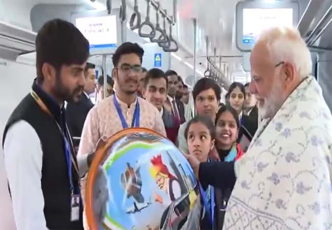 Sandesh Wahak Digital Desk: प्रधानमंत्री नरेंद्र मोदी ने दिल्ली में 12,200 करोड़ रुपये से अधिक की विकास परियोजनाओं का उद्घाटन और शिलान्यास किया। इस दौरान उन्होंने ‘नमो भारत’ ट्रेन की पहली सवारी भी की। साहिबाबाद RRTS स्टेशन से न्यू अशोक नगर RRTS स्टेशन तक ट्रेन में सफर करते हुए पीएम मोदी ने बच्चों से मुलाकात कर उनकी हौसलाअफजाई की।