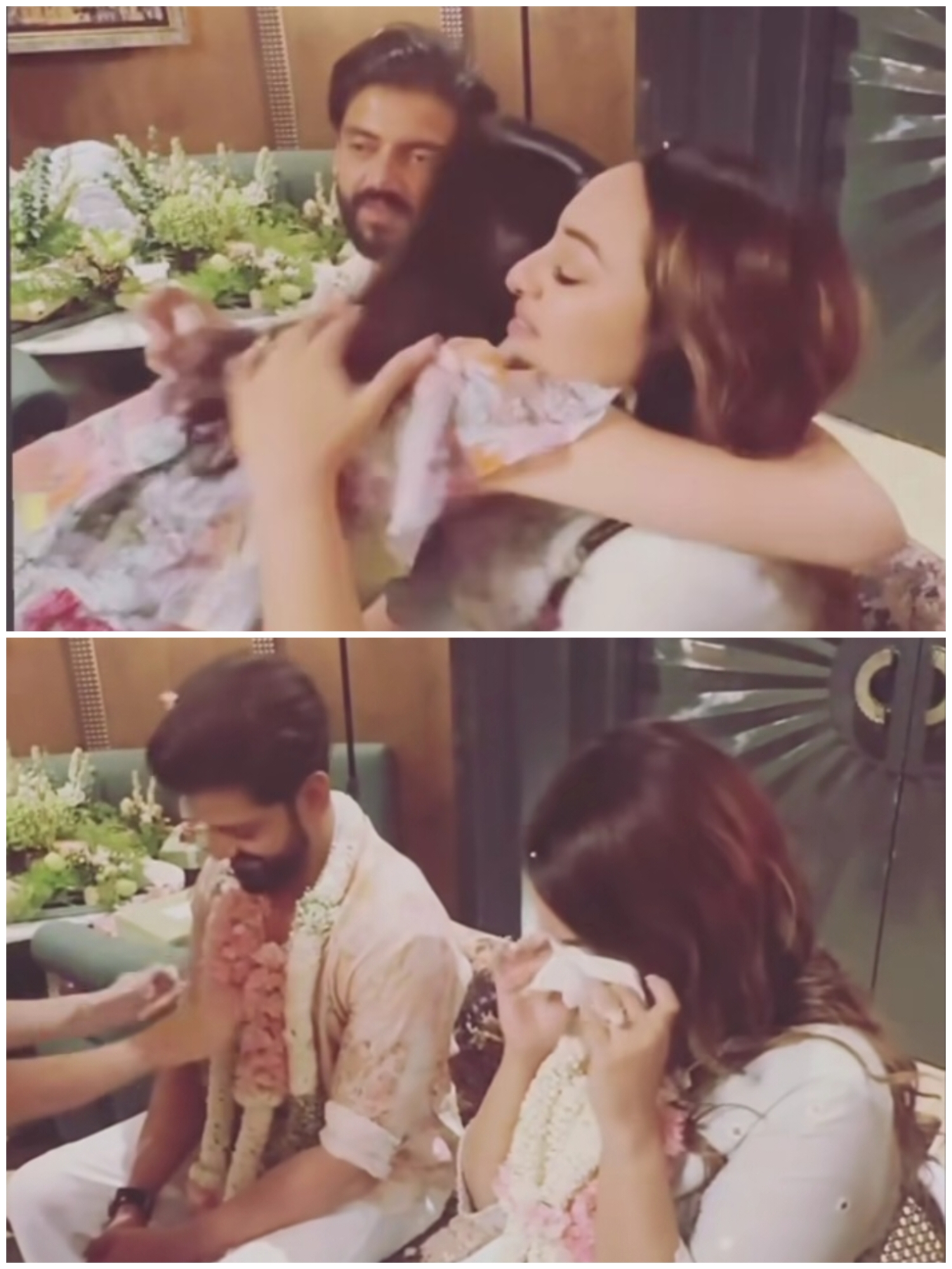 शादी की रस्मों के दौरान एक दिल को छू लेने वाला वीडियो सामने आया है, जिसमें सोनाक्षी इमोशनल होती हुई नजर आ रही हैं। इस वीडियो में जहीर की मुंहबोली बहन जन्नत वासी अपनी होने वाली भाभी सोनाक्षी का रतनसी परिवार में स्वागत करती हुई दिखाई दे रही हैं। जैसे ही सोनाक्षी की ननद उनके साथ रस्म निभा रही होती हैं, सोनाक्षी इमोशनल हो जाती हैं और आंसू पोछते हुए दिखती हैं।