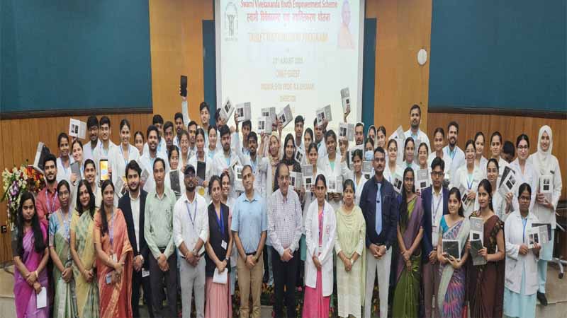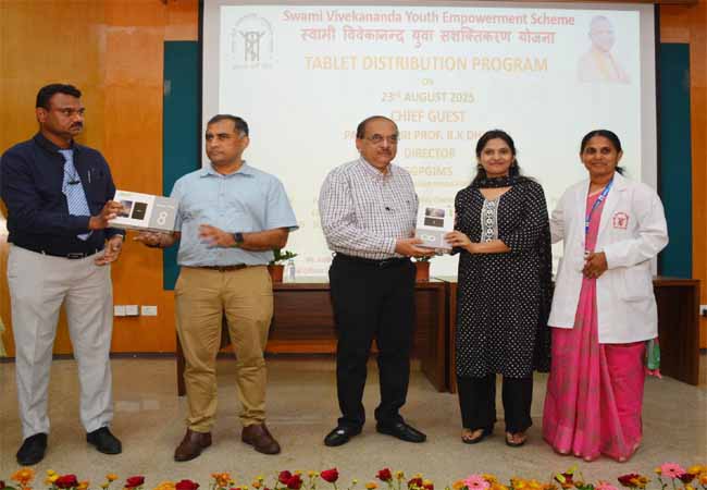 Sandesh Wahak Digital Desk: संजय गांधी स्नातकोत्तर आयुर्विज्ञान संस्थान (SGPGI) के कॉलेज ऑफ नर्सिंग में शनिवार को एक खास कार्यक्रम का आयोजन किया गया। इस कार्यक्रम में नए आए बीएससी और एमएससी नर्सिंग के छात्रों का स्वागत किया गया। साथ ही, अंतिम वर्ष के 52 छात्र-छात्राओं को पढ़ाई के लिए टैबलेट भी दिए गए। यह टैबलेट उत्तर प्रदेश सरकार की ‘स्वामी विवेकानंद युवा सशक्तिकरण योजना’ के तहत दिए गए हैं। इनका उद्देश्य छात्रों को डिजिटल शिक्षा और तकनीकी ज्ञान से जोड़ना है।