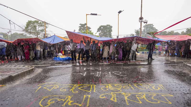 बंगाल की खाड़ी पर बने कम दबाव के कारण शुक्रवार दोपहर से पश्चिम बंगाल में लगातार बारिश हो रही है। कनिष्ठ चिकित्सकों ने नौ अगस्त की शाम से काम बंद कर रखा है। वे कोलकाता पुलिस आयुक्त विनीत गोयल, स्वास्थ्य सचिव एन एस निगम, स्वास्थ्य सेवाओं के निदेशक और चिकित्सा शिक्षा निदेशक को आरजी कर घटना के संदर्भ में अपने कर्तव्यों के निर्वहन में विफल रहने के लिए निलंबित किए जाने की मांग कर रहे हैं। वे राज्य में सभी महिला स्वास्थ्य पेशेवरों की सुरक्षा के लिए पर्याप्त कदम उठाए जाने की भी मांग कर रहे हैं।