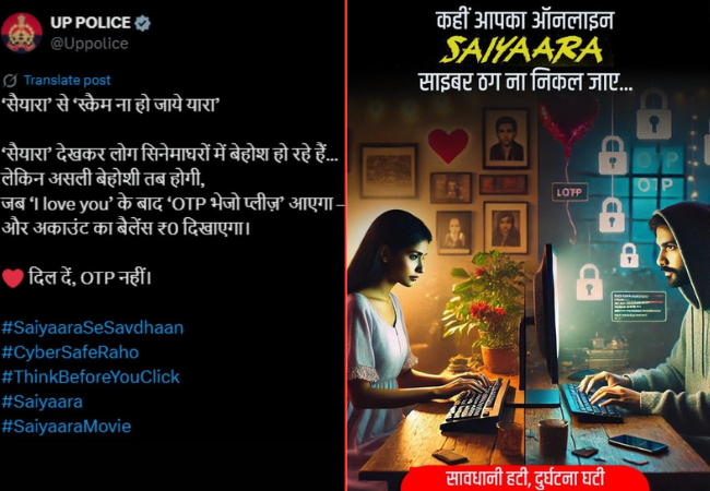 ‘सैयारा से स्कैम ना हो जाये यारा’, यूपी पुलिस का क्रिएटिव मैसेज वायरल
