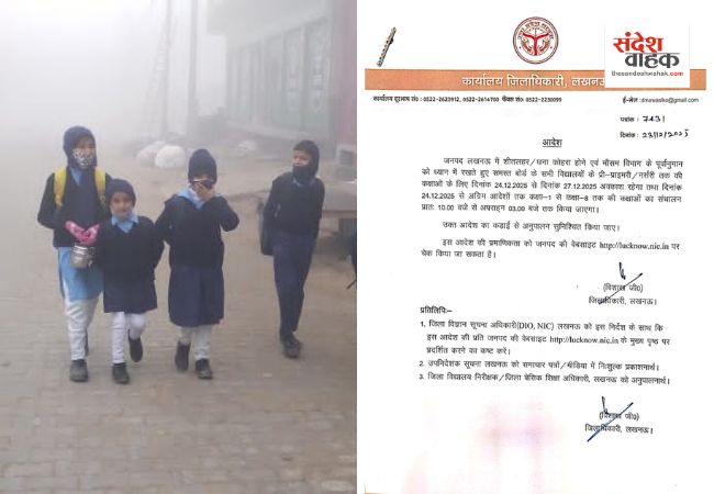 जिलाधिकारी के आदेश के अनुसार, लखनऊ के सभी विद्यालयों (CBSE, ICSE, UP Board व अन्य) में प्री-प्राइमरी से नर्सरी तक की कक्षाएं 24 दिसंबर से 27 दिसंबर 2025 तक पूरी तरह बंद रहेंगी। यह निर्णय छोटे बच्चों को सुबह की भीषण ठंड और घने कोहरे से बचाने के लिए लिया गया है।