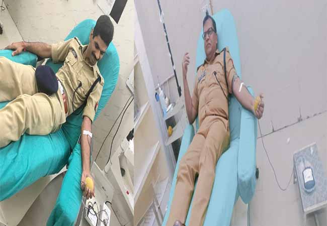 पुलिस अधिकारियों ने किया रक्तदान