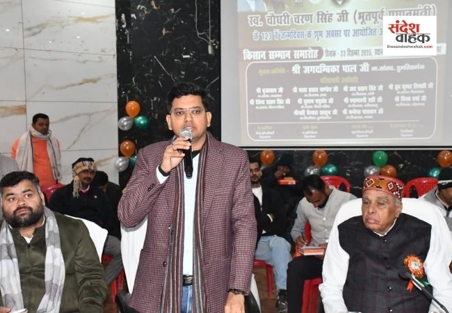 सांसद जगदम्बिका पाल ने जनपद के अन्नदाताओं को संबोधित करते हुए कहा कि चौधरी चरण सिंह ने जीवन भर किसानों की समस्याओं के निराकरण के लिए लड़ाई लड़ी और कभी सिद्धांतों से समझौता नहीं किया। उत्तर प्रदेश को 1 ट्रिलियन डॉलर की अर्थव्यवस्था बनाने में सिद्धार्थनगर के किसानों का बड़ा योगदान होगा। उन्होंने खेसरहा की किसान अल्का सिंह का उदाहरण दिया, जो प्रतिवर्ष 20-25 टन काला नमक चावल का उत्पादन कर इसे अंतर्राष्ट्रीय बाजार तक पहुंचा रही हैं।