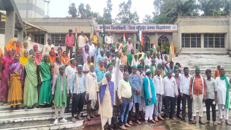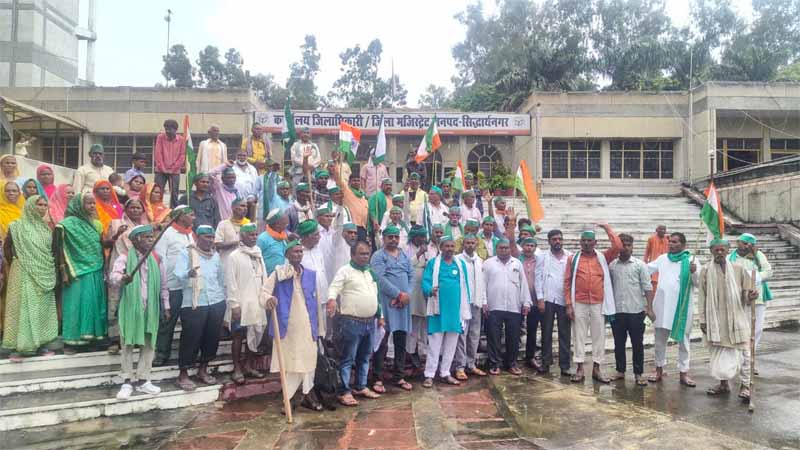 Sandesh Wahak Digital Desk: भारतीय किसान यूनियन (भाकियू) (टिकैत) ने बुधवार को सिद्धार्थनगर में जोरदार प्रदर्शन किया। जिलाध्यक्ष प्रदीप कुमार के नेतृत्व में सैकड़ों किसानों ने ट्रैक्टरों के साथ कलेक्ट्रेट परिसर तक रैली निकाली और राष्ट्रपति द्रौपदी मुर्मू को संबोधित 11 सूत्रीय मांगों का ज्ञापन जिलाधिकारी के माध्यम से सौंपा। इस दौरान किसानों ने “बहुराष्ट्रीय कंपनियाँ भारत छोड़ो, कॉरपोरेट खेती छोड़ो” जैसे नारे लगाए।
