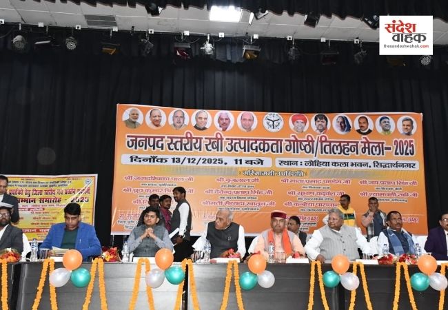 Sandesh Wahak Digital Desk: जनपद सिद्धार्थनगर जिला मुख्यालय के लोहिया कला भवन में शनिवार को जनपद स्तरीय रबी उत्पादकता गोष्ठी एवं तिलहन मेला का भव्य आयोजन किया गया। कार्यक्रम में मुख्य अतिथि डुमरियागंज के सांसद जगदम्बिका पाल और जिलाधिकारी (डीएम) शिवशरणप्पा जीएन सहित मुख्य विकास अधिकारी (सीडीओ) बलराम सिंह तथा सांसद प्रतिनिधि एस.पी. अग्रवाल उपस्थित रहे।