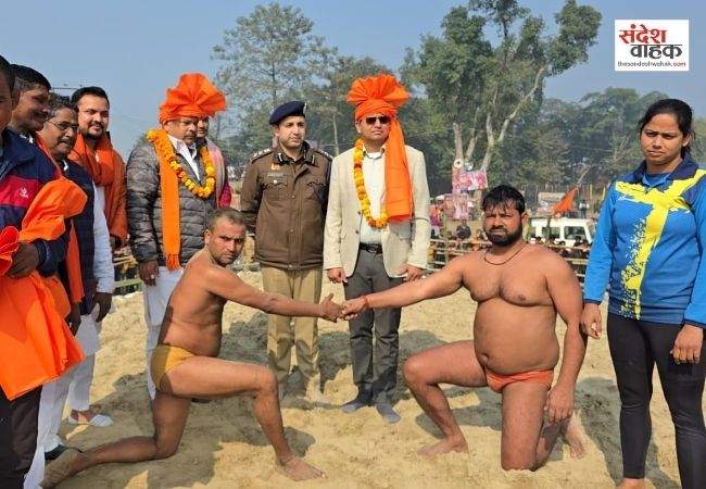 Sandesh Wahak Digital Desk: उत्तर प्रदेश के सिद्धार्थनगर जिले में राप्ती नदी के पावन तट पर स्थित परशुराम वाटिका शनिवार को शौर्य, शक्ति और संस्कृति के संगम की गवाह बनी। मौनी अमावस्या के पावन अवसर पर लगने वाले पारंपरिक मेले में ‘धर्म रक्षा मंच’ के तत्वाधान में दो दिवसीय भव्य “राम राम कुश्ती दंगल” का आगाज हुआ। इस दंगल में न केवल भारत के कोने-कोने से नामी पहलवान जुटे, बल्कि पड़ोसी मुल्क नेपाल के लड़ाकों ने भी अपने दांव-पेंच से दर्शकों को दांतों तले उंगली दबाने पर मजबूर कर दिया।