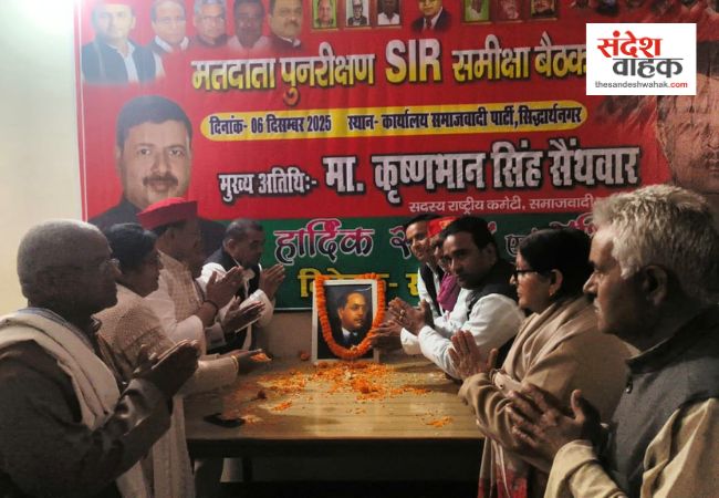 सिद्धार्थनगर: समाजवादी पार्टी (सपा) के जिला कार्यालय पर भारत रत्न बाबा साहेब भीमराव अम्बेडकर के महापरिनिर्वाण दिवस के अवसर पर मतदाता पुनरीक्षण (SIR) अभियान की एक भव्य समीक्षा बैठक का आयोजन किया गया। बैठक की शुरुआत बाबा साहेब के चित्र पर श्रद्धा सुमन अर्पित करके की गई।