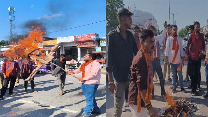 Sitapur News: हरगांव में फूटा ABVP का गुस्सा, कैबिनेट मंत्री ओपी राजभर का फूंका पुतला