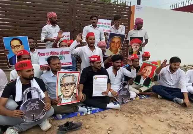 Sandesh Wahak Digital Desk: उत्तर प्रदेश के सीतापुर जिले में प्राथमिक विद्यालयों के एकीककरण (मर्जर) को लेकर सियासी और सामाजिक हलचल तेज हो गई है। समाजवादी पार्टी की छात्र इकाई (सपा छात्र सभा) ने इस फैसले के खिलाफ शनिवार को बीएसए कार्यालय का घेराव किया और मुख्य गेट पर ताला जड़कर जोरदार विरोध दर्ज कराया।