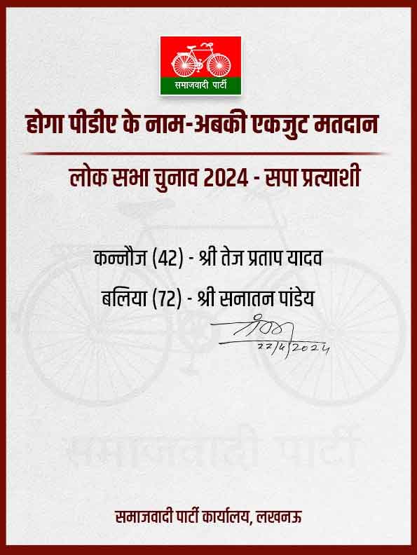 इसके साथ ही बलिया लोकसभा सीट से सपा ने अपने प्रत्याशी की घोषणा कर दी है। सपा ने बलिया से सनातन पांडेय को चुनावी मैदान में उतारा है। सनातन पांडेय बलिया की चिलकहर सीट से विधायक रह चुके हैं। सपा सरकार में उन्हें मंत्री भी बनाया गया था। सनातन का मुकाबला बीजेपी के प्रत्याशी और पूर्व प्रधानमंत्री चंद्रशेखर के बेटे नीरज शेखर से होगा। जो यहां से दो बार से सांसद भी रह चुके हैं।