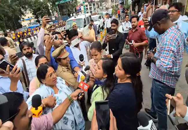 प्रदर्शन को देखते हुए मौके पर बड़ी संख्या में पुलिस बल, खासतौर पर महिला पुलिसकर्मियों को सादी वर्दी में भी तैनात किया गया था। जब महिला प्रदर्शनकारी आगे बढ़ने लगीं, तो पुलिस ने उन्हें रोकने की कोशिश की। इस दौरान पुलिस और प्रदर्शनकारियों के बीच धक्का-मुक्की भी हुई। कुछ महिला कार्यकर्ताओं को हिरासत में लेकर इको गार्डन भेज दिया गया।
