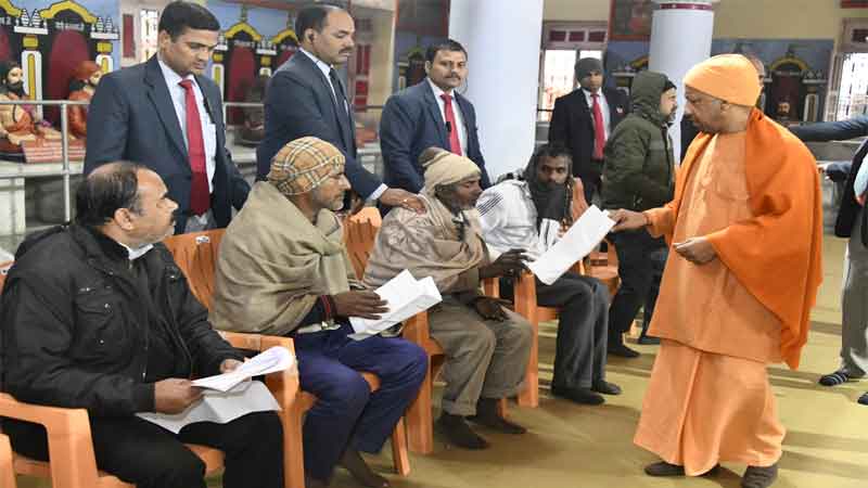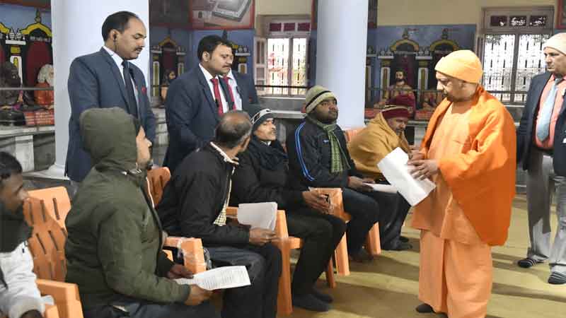 सीएम योगी मंगलवार सुबह गोरखनाथ मंदिर में आयोजित जनता दर्शन में लोगों की समस्याएं सुन रहे थे। मंदिर परिसर के महंत दिग्विजयनाथ स्मृति भवन में कुर्सियों पर बैठाए गए लोगों तक वह खुद पहुंचे और एक-एक करके सबकी समस्याएं सुनीं।