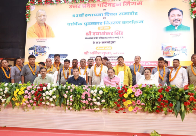 Sandesh Wahak Digital Desk: उत्तर प्रदेश परिवहन निगम (UPSRTC) ने आज अपने 53वें स्थापना दिवस का भव्य आयोजन किया। लखनऊ के इंदिरा गांधी प्रतिष्ठान स्थित मार्श ऑडिटोरियम में आयोजित इस कार्यक्रम की शुरुआत परिवहन राज्य मंत्री (स्वतंत्र प्रभार) दयाशंकर सिंह ने दीप प्रज्वलित कर की। इस अवसर पर मंत्री ने परिवहन निगम की सेवा में उत्कृष्ट प्रदर्शन करने वाले 406 कर्मचारियों, चालकों और परिचालकों को सिल्वर कॉइन और प्रशस्ति पत्र देकर सम्मानित किया। साथ ही, उन परिवारजनों को भी सम्मानित किया गया, जिनके सदस्य विभिन्न परीक्षाओं में चयनित हुए। सेवानिवृत्त जीएम अजीत सिंह को उनके योगदान के लिए लाइफटाइम अचीवमेंट अवॉर्ड प्रदान किया गया।