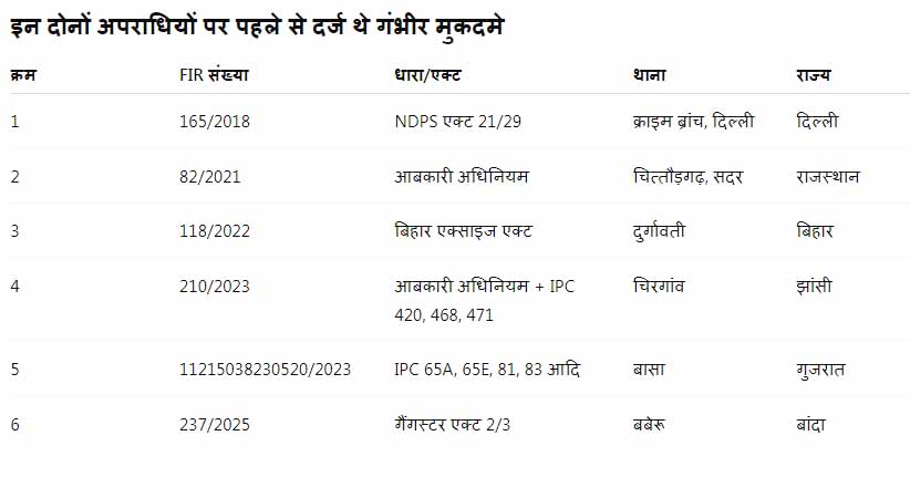 पुलिस रिकॉर्ड के अनुसार, वह पहले भी कई राज्यों में NDPS एक्ट, आबकारी कानून और गैंगस्टर एक्ट जैसे गंभीर मामलों में गिरफ्तार हो चुका है।