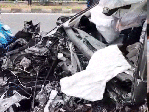 लखनऊ में क्रेन से टकराई अनियंत्रित तेज रफ्तार कार, दो की मौत