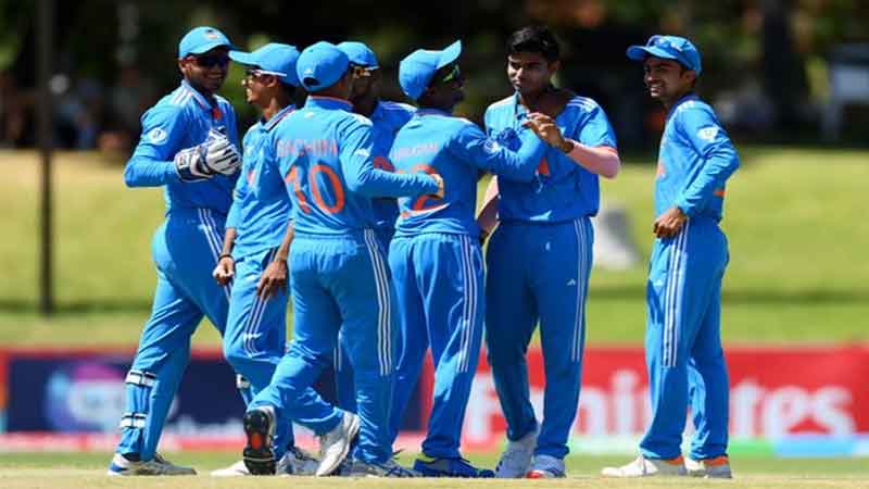 अर्शिन कुलकर्णी, आदर्श सिंह, रुद्र मयूर पटेल, सचिन धस, प्रियांशु मोलिया, मुशीर खान, उदय सहारन (कप्तान), अरवेल्ली अवनीश राव, सौम्य कुमार पांडे, मुरुगन अभिषेक, इनेश महाजन, धनुष गौड़ा, आराध्या शुक्ला, राज लिम्बानी और नमन तिवारी।