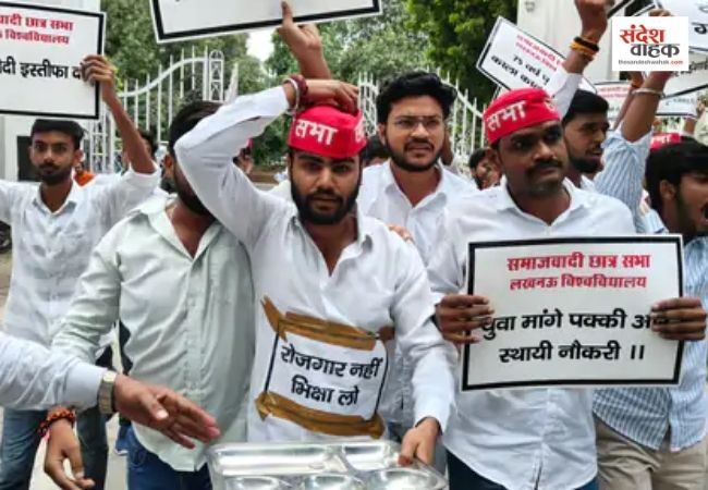 Sandesh Wahak Digital Desk: प्रधानमंत्री नरेंद्र मोदी के जन्मदिन के मौके पर लखनऊ में छात्रों और युवा कार्यकर्ताओं ने अनोखे तरीके से विरोध प्रदर्शन किया। समाजवादी छात्र सभा और एनएसयूआई के सदस्यों ने मिलकर ‘बेरोजगारी बारात’ निकाली, जिसमें युवाओं ने सरकार से रोजगार की मांग की।