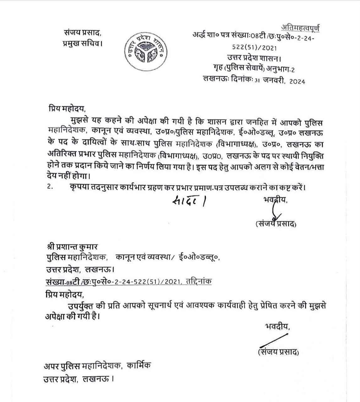 UP: एडीजी प्रशांत कुमार का बढ़ा कद, बने यूपी के नए कार्यवाहक DGP