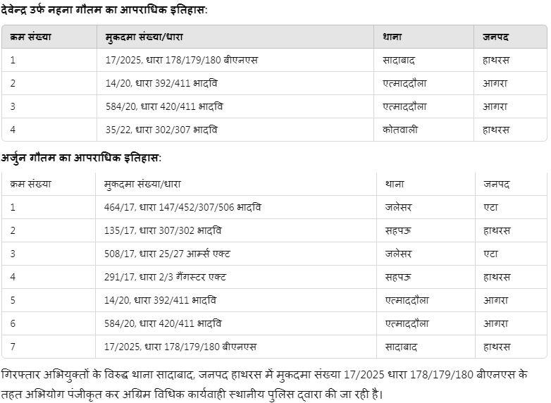 - अर्जुन गौतम पुत्र मुन्ना लाल, निवासी कूपा गली, गौतमनगर, थाना सादाबाद, हाथरस