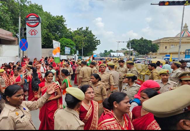 Lucknow: बीसी सखियों ने निकाली न्याय यात्रा, विधानभवन घेरने की कोशिश, पुलिस से नोकझोंक