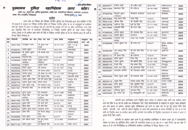 इस सूची में प्रदेश के अलग-अलग जिलों व कमिश्नरेट्स से उप निरीक्षकों को शामिल किया गया है, जो पिछले वर्षों में चयनित हुए थे और सेवा नियमों के अनुसार पदोन्नति के पात्र पाए गए।