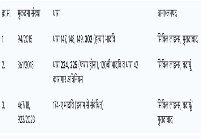 सुमित कुमार पर मुरादाबाद और बदायूं के विभिन्न थानों में हत्या, आर्म्स एक्ट, और जेल से फरार होने के आरोप में कई गंभीर आपराधिक मामले दर्ज हैं, जिनमें मुख्य हैं: