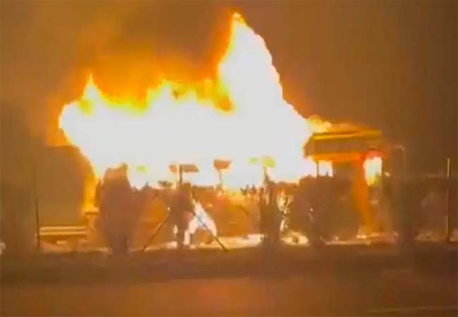 अधिकारी ने बताया कि घटना की सूचना मिलते ही पुलिस और दमकल कर्मी मौके पर पहुंचे जिन्होंने आग पर काबू पाया। घटना के कारण कुछ देर के लिए एक्सप्रेस वे पर वाहनों की आवाजाही बाधित रही।