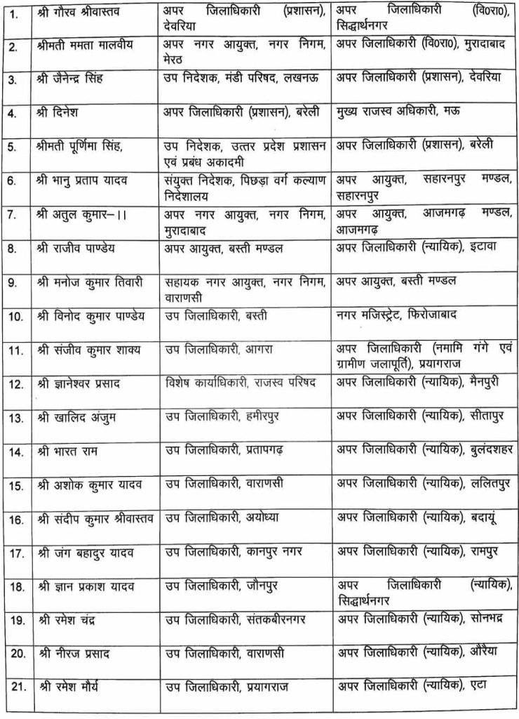 - दिनेश, अपर जिलाधिकारी, बरेली – मुख्य राजस्व अधिकारी, मऊ
