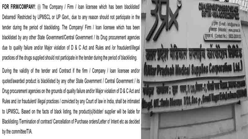 यूपीएमएससीएल की टेंडर शर्तों में दिया है कि दूसरे राज्यों से क्वालिटी ग्राउंड पर ब्लैकलिस्टेड फर्मों को यूपी में प्रतिभाग नहीं करने दिया जाएगा। तमिलनाडु कार्पोरेशन के क्वालिटी कंट्रोल विभाग ने इसी ग्राउंड पर उक्त फर्म ऑस्कर रेमेडीज़ को पांच वर्ष के लिए ब्लैकलिस्ट किया है। आदेश भी वेबसाइट पर मौजूद है। फिर भी यूपी मेडिकल कार्पोरेशन को ऐसी दागी फर्में लुभा रही हैं।