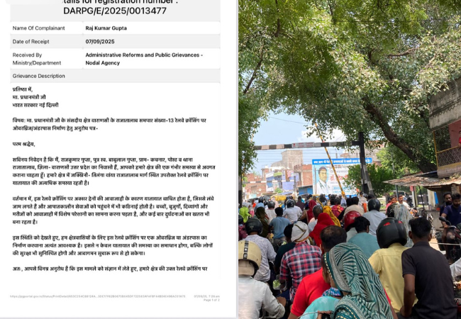 Varanasi News: राजातालाब रेलवे फाटक पर ओवरब्रिज/अंडरपास की मांग तेज, पीएम को भेजा गया ज्ञापन