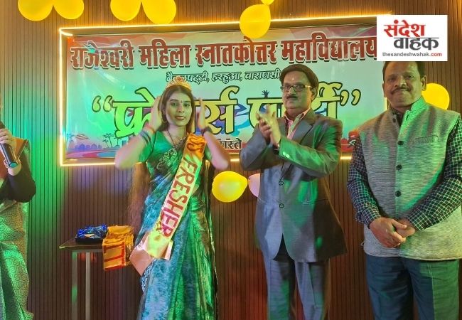 Sandesh Wahak Digital Desk: वाराणसी के राजेश्वरी महिला स्नातकोत्तर महाविद्यालय, हरहुआ में सोमवार को स्नातक (UG) और स्नातकोत्तर (PG) प्रथम सेमेस्टर की छात्राओं के लिए एक भव्य और रंगारंग फ्रेशर्स पार्टी का आयोजन किया गया। इस कार्यक्रम में नवागंतुक छात्राओं को सफल जीवन और करियर के चुनाव के लिए महत्वपूर्ण मार्गदर्शन दिए गए।