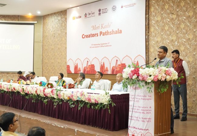 Varanasi News: काशी की विरासत और कहानियों को देश-दुनिया तक पहुंचाने के लिए पर्यटन मंत्रालय, उत्तर प्रदेश पर्यटन और वाराणसी ज़िला प्रशासन ने मिलकर एक अनूठी पहल शुरू की है। बुधवार को आयुक्त कार्यालय परिसर के ऑडिटोरियम में ‘मेरी काशी क्रिएटर्स पाठशाला’ का आयोजन किया गया।