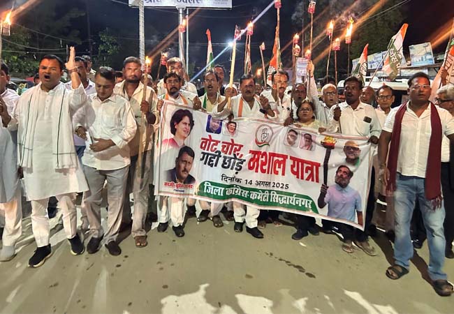 सिद्धार्थनगर में ‘वोट चोर गद्दी छोड़’ मशाल यात्रा, कांग्रेस ने भाजपा और चुनाव आयोग पर लगाए आरोप